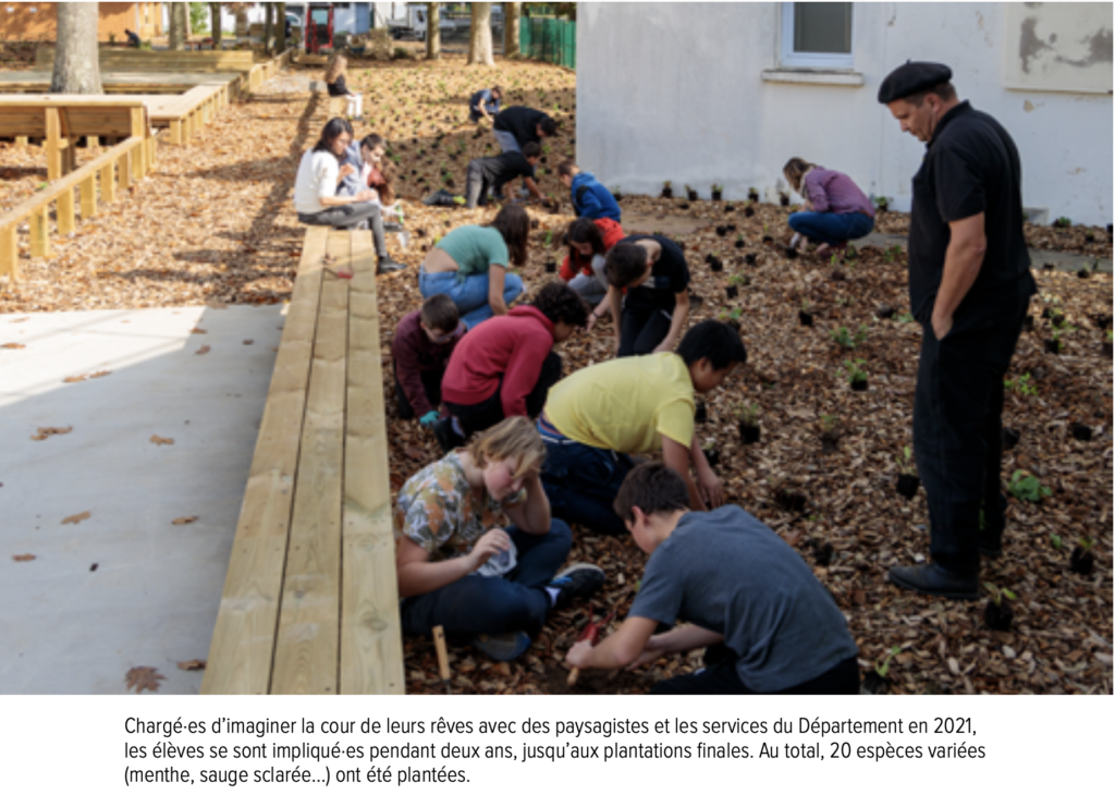 » En 2021, le Département proposait aux élèves et personnels du collège ArthurcRimbaud à Donges d’imaginer la cour de leurs rêves avec des paysagistes.